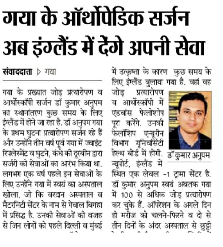 If you're from Gaya, Patna, Muzaffarpur, or any other part of Bihar, and you're struggling with spine, knee, or joint problems, you're not alone. Countless patients in the region silently endure pain—believing quality treatment is only available in metros like Delhi or Mumbai. But now, Dr. Kumar Anupam is changing that. With advanced training, years of hands-on experience, and a patient-first approach, Dr. Anupam is bringing world-class orthopaedic and spine care right to your doorstep in Gaya, Bihar.